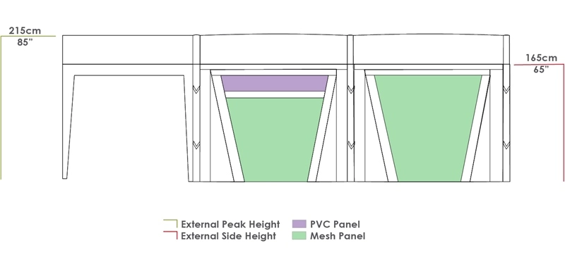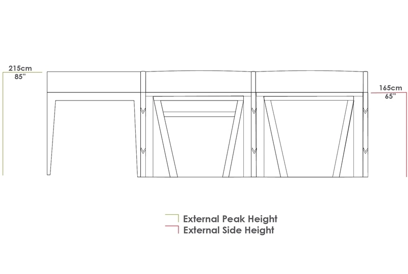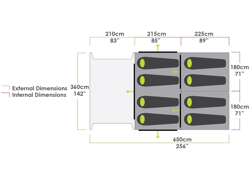 Layout | The Airforce 1 V2 features our most popular tent layout. Rooms at one end of the tent offer privacy and can be divided in two by attaching the included curtain. Once divided, each room has its own internal door, rear window and 3-way side windown. The sides of the main living area can be fully opened to create another entry/exit or to allow for maximum airflow. The front wall of the central living area completely zips open creating a seamless transition between the indoor and outdoor areas of the tent.