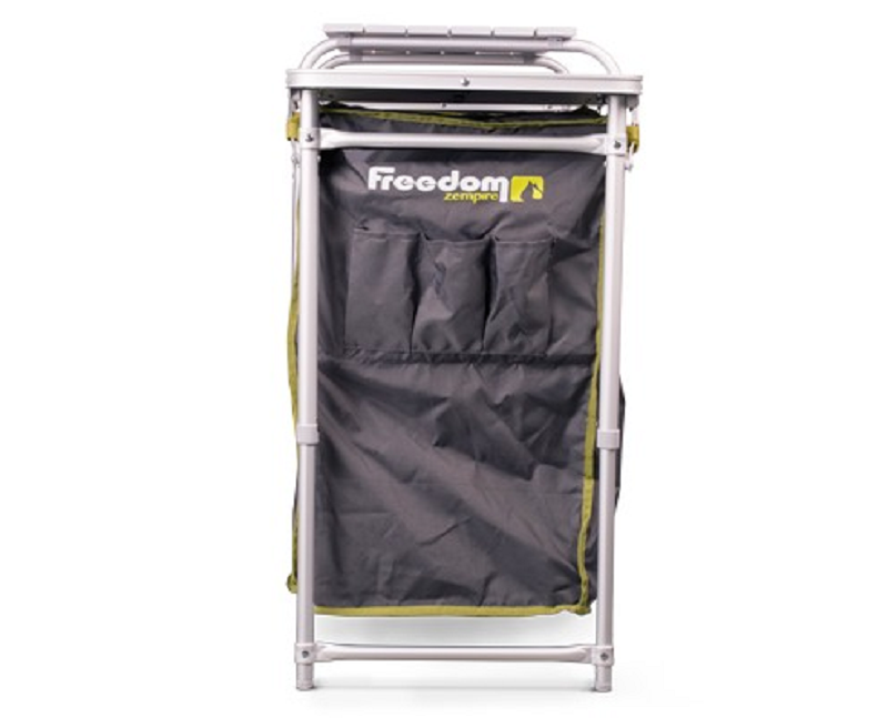 The Zempie Kitchen Cupboards have 5 large storage shelves and 3 food prep surfaces. These are great for sitting the gas cooker on while cooking up the mornings catch or preparing a meal for the family.