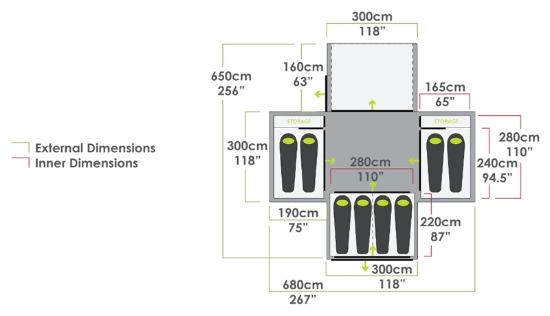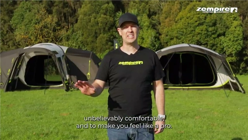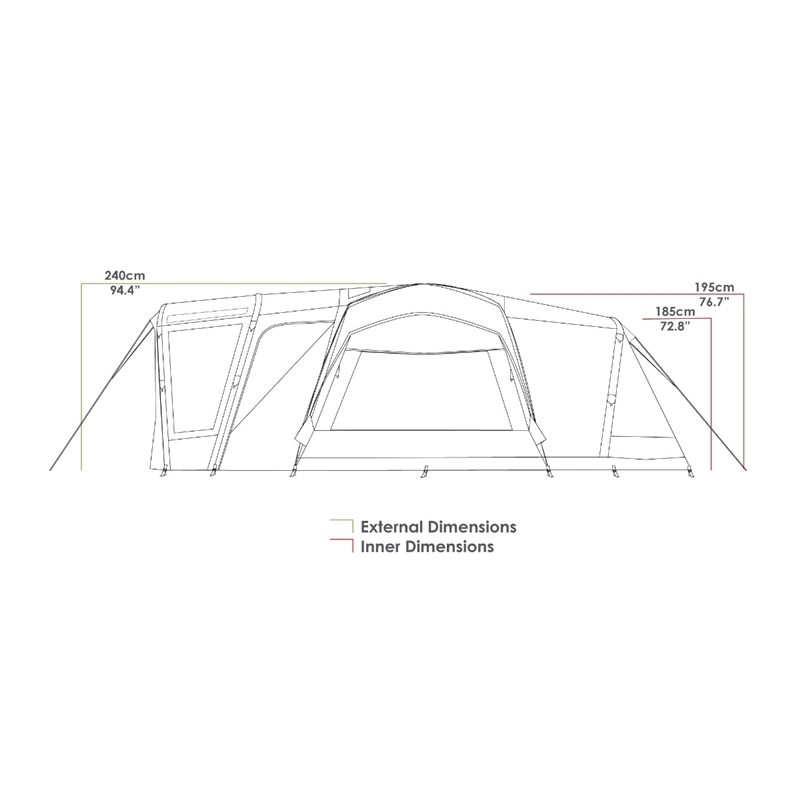 You’ll enjoy a huge amount of space, privacy and superior features with our new Zempire Pro III V2 Air Tent. The fully inflatable frame with a central cross structure provides an expansive living space while offering increased privacy in each of the three separate bedrooms. The features are extensive, including a large master bedroom at the rear with its own dedicated access door. The front awning area can be attached to either an optional awning wall set to enclose, or an Aerobase shelter to provide a truly connected living space.
