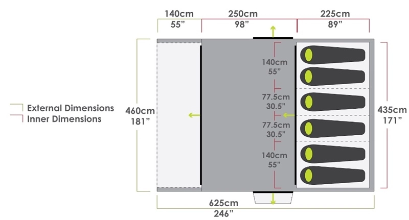 With a huge internal living area, there’s plenty of room to spread out indoors and the rear multi-room inner provides ultimate flexibility with up to 4 bedrooms (5 with an optional add-on bedroom to sleep 8). The front awning area can be connected to an additional awning wall set or directly to a Zempire Aerobase 3 shelter for even more covered space.